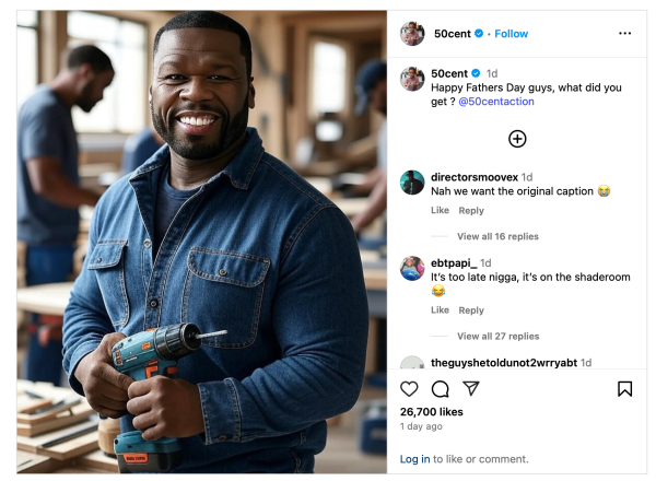 Never one to let a troll go unchecked, 50 Cent fired back on his own Gram with a trio of AI-themed posts that took the gloves off. In one image, the G-Unit general is seen rocking a denim jacket while holding a drill. He mimicked his son’s wording before unleashing a harsh clapback. “Oh it’s Father’s Day,” the caption began with a shocked emoji. “Happy Fathers Day Little Bih, I’ll have full custody soon little bih, you’ll be back on only fans in no time Little Bih. [eye emoji] but how is your day going Little Bih?” He later updated the caption to simply say, “Happy Fathers Day guys, what did you get?”