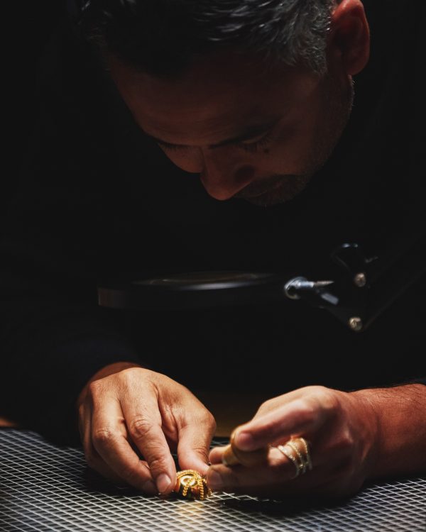Great question. Next time you’re in LA, be sure to stop by my studio. You’ll see that it’s an absolute mess. We have various components and pieces of things scattered throughout. Throughout the process, we end up with a significant amount of refuse material that would have otherwise gone to waste. As we began to ideate on how to bridge that gap, I mentioned that these two celebratory milestones made it a lot of sense to recycle the gold material into creating this form. All the techniques and materials we use to create this are the same as those I use to make trophies and other items the NBA uses to celebrate. So, it’s felt very seamless. One of the things I imagine is fun for the fans is being able to take some of the DNA of the championship and put it into a bottle that they can get their hands on.