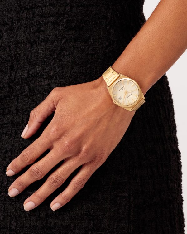 - Refined stainless-steel case and sleek uni-link bracelet that exudes sophistication.